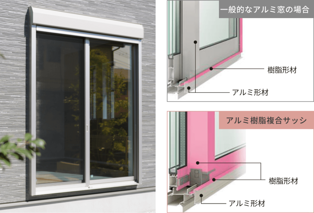 - 断熱、結露防止効果を備えた「アルミ樹脂複合サッシ」