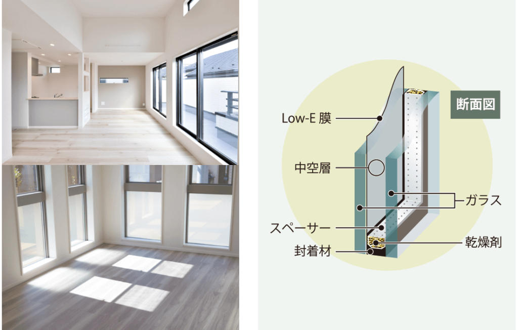 - すべての窓に「Low-E複層ガラス」