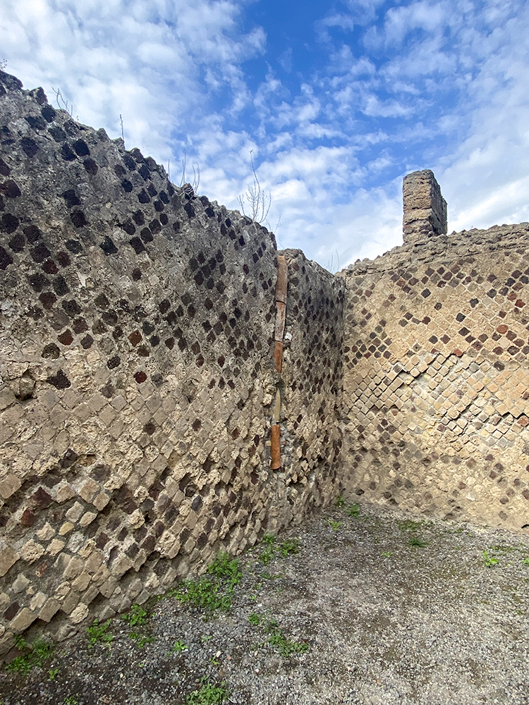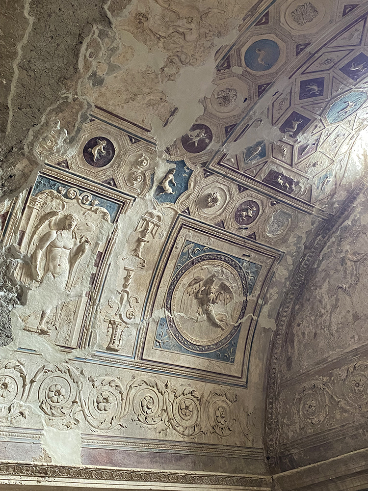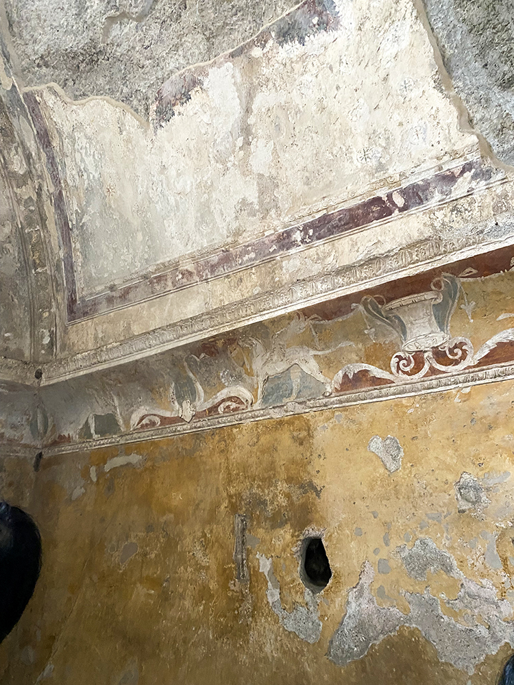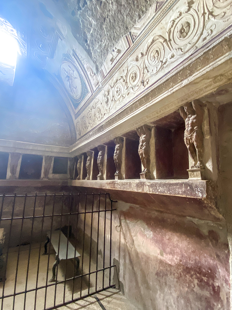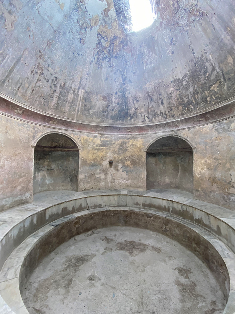 2階以上は崩れている建物が多い中、天井がアーチ状やドーム状になっていた浴場は火山灰が落ちやすかったために比較的当時のまま残っているとのこと。