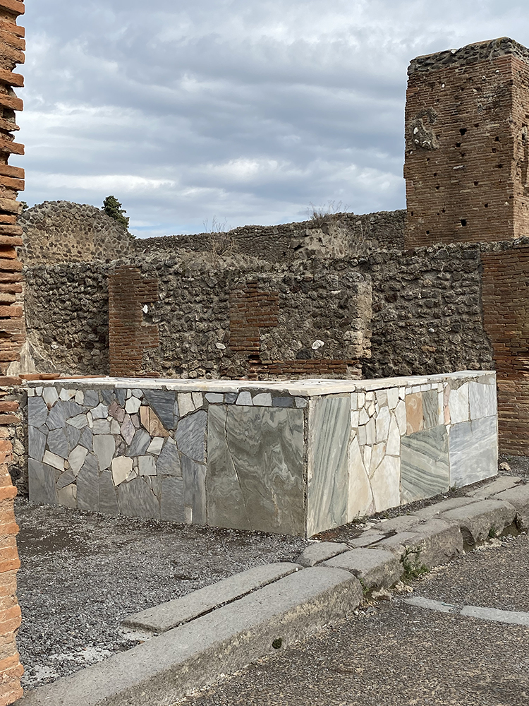 ポンペイにはいくつも居酒屋があり、そのカウンターも特徴的です。
