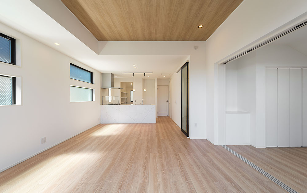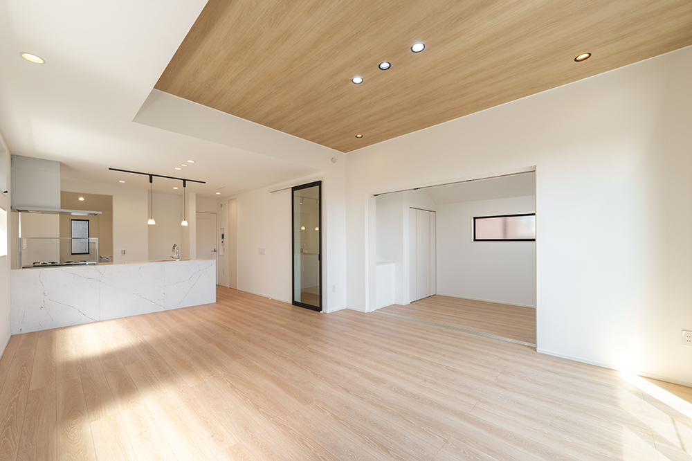光と空気が縦に抜けるLDKは、日常にゆとりを添え、空間のつながりが暮らしに豊かさをもたらします。