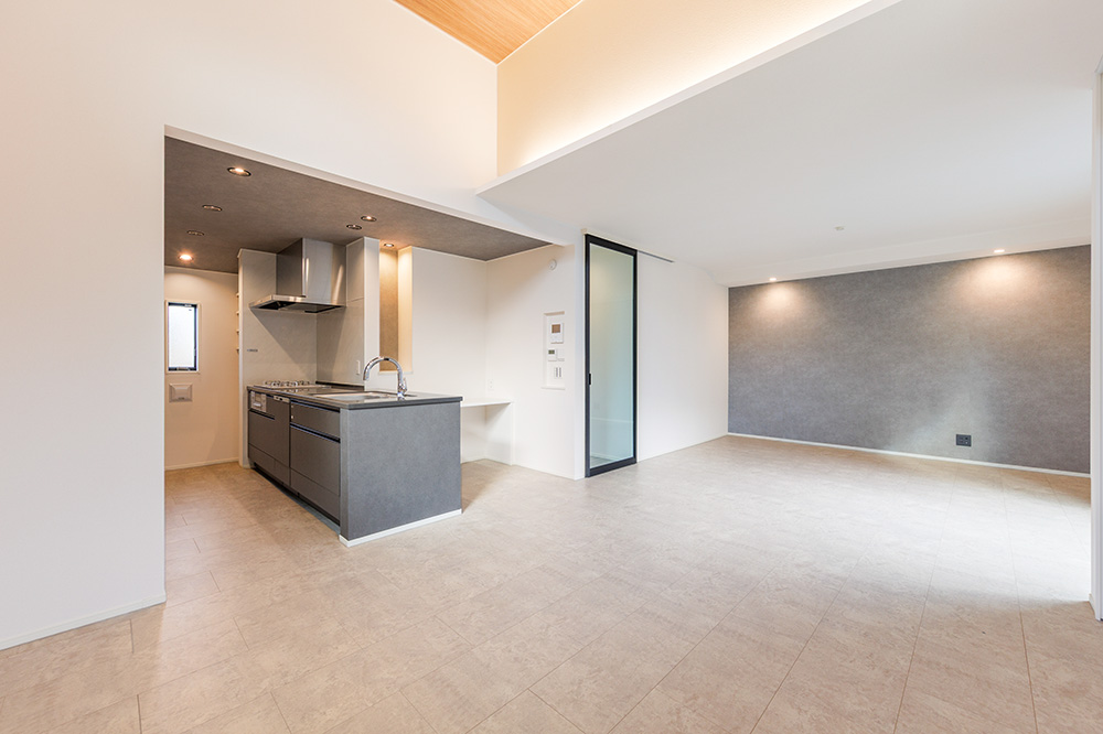 縦方向への広がりが視界を遮らず、リビング全体にゆとりを生み出す高天井設計。見上げれば、伸びやかな空間が心を解きほぐし、気品漂う雰囲気が特別な寛ぎを演出します。開放感と明るさに包まれたこの空間は、日常に上質なひとときをもたらします。