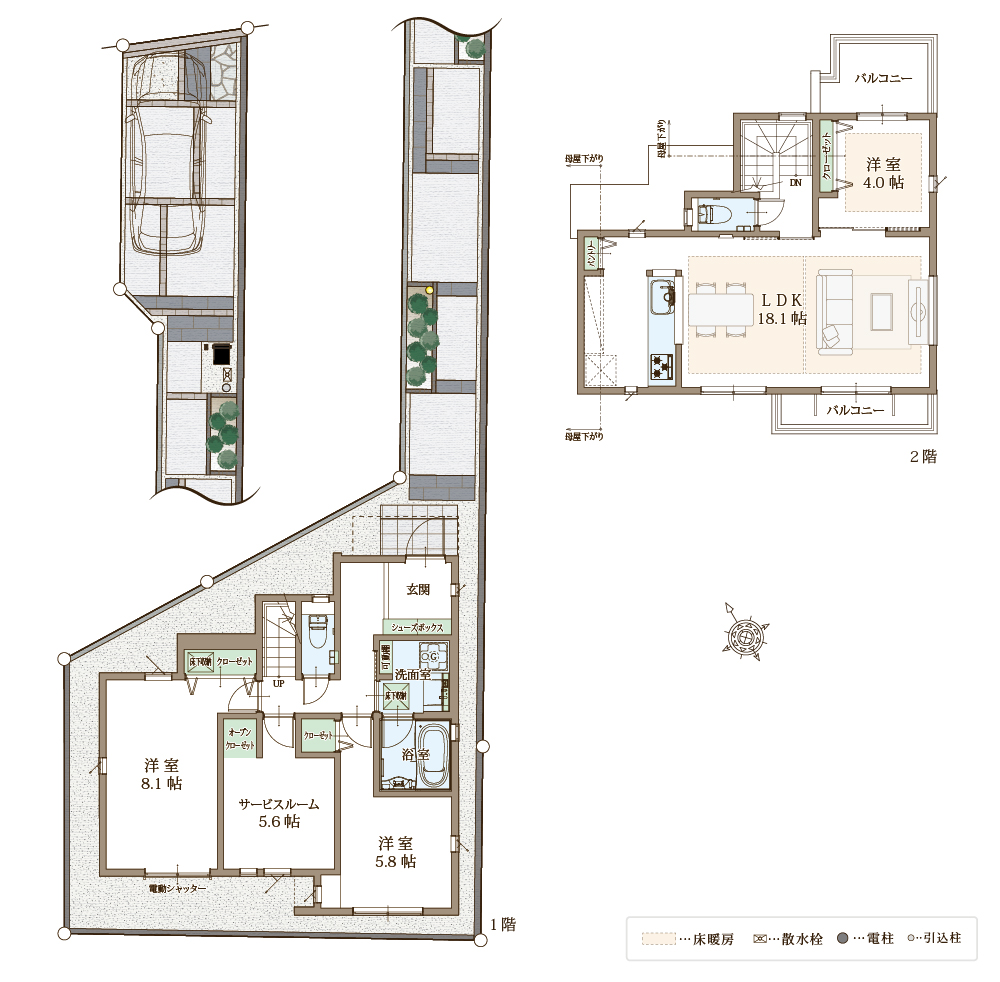 122㎡超のゆとりある敷地に、太陽光パネル+蓄電池やEV対応コンセントなど