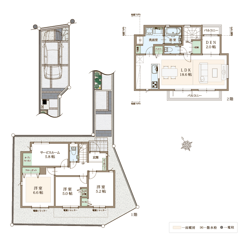 快適性と省エネ性に優れた太陽光パネル×蓄電池の次世代型省エネ住宅。自立する住宅を目指し、災害時でも安心。ZEH水準省エネ住宅に該当。電動シャッターや防犯ガラスを合わせたペアガラスでセキュリティも万全。