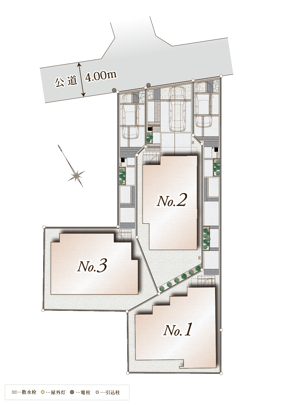 セットバックあり(1号棟:0.52㎡、2号棟:0.89㎡、3号棟:0.52㎡)