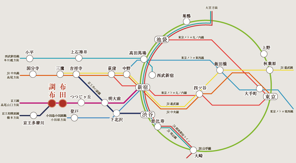 ※掲載の所要時間は平日・通勤時(7:30~9:00)のもので、乗り換え・待ち時間を含みます。また、平常時(11:00~14:00)は異なります。(2026年2月現在)