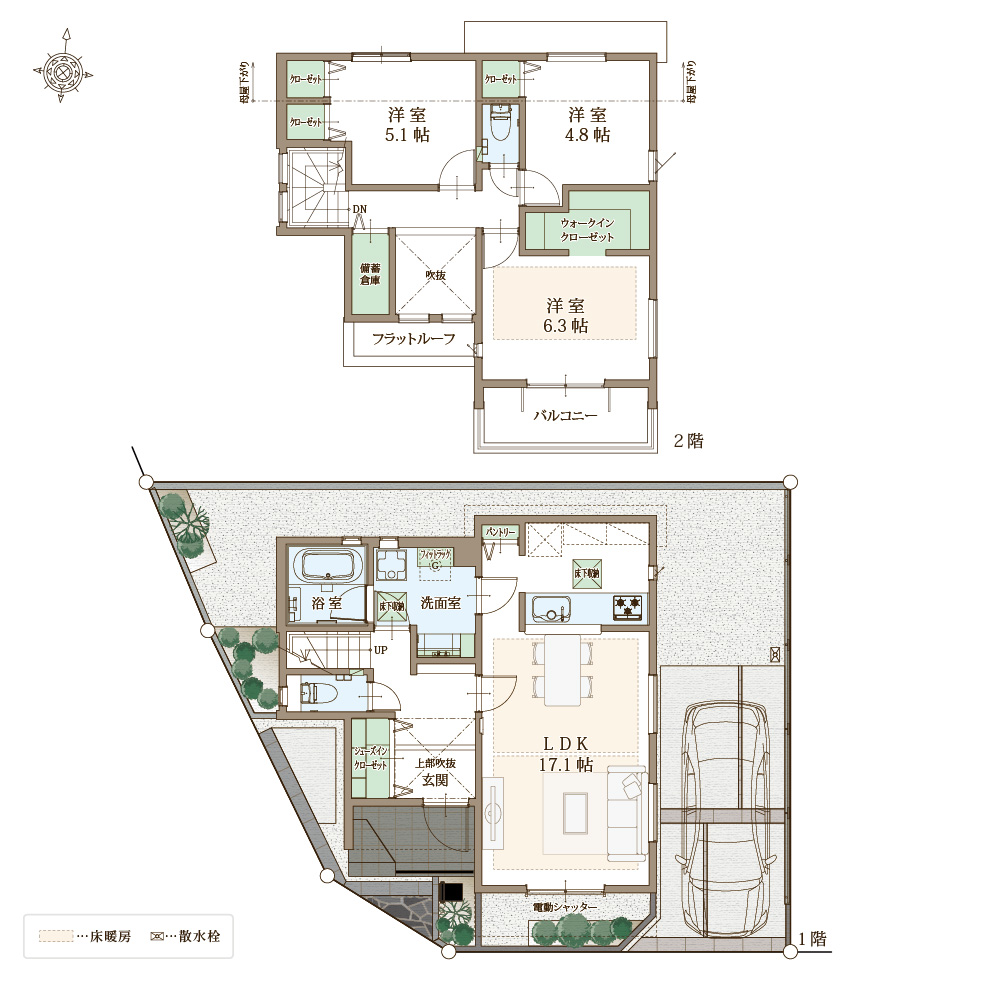 ※【フラット35】S利用可(金利Aプラン):当初5年間、店頭表示金利より年△0.5%金利引き下げ。