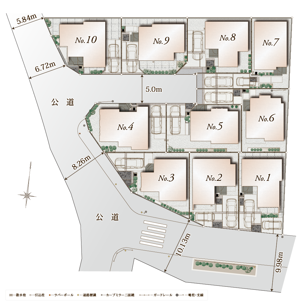 区域内幅員5.00m アスファルト舗装 公道(4~10号棟) |