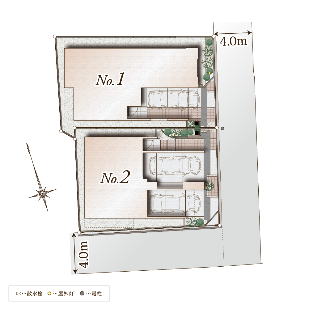 セットバックあり(1号棟:1.80㎡、2号棟:2.29㎡)