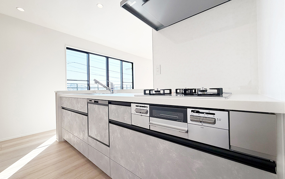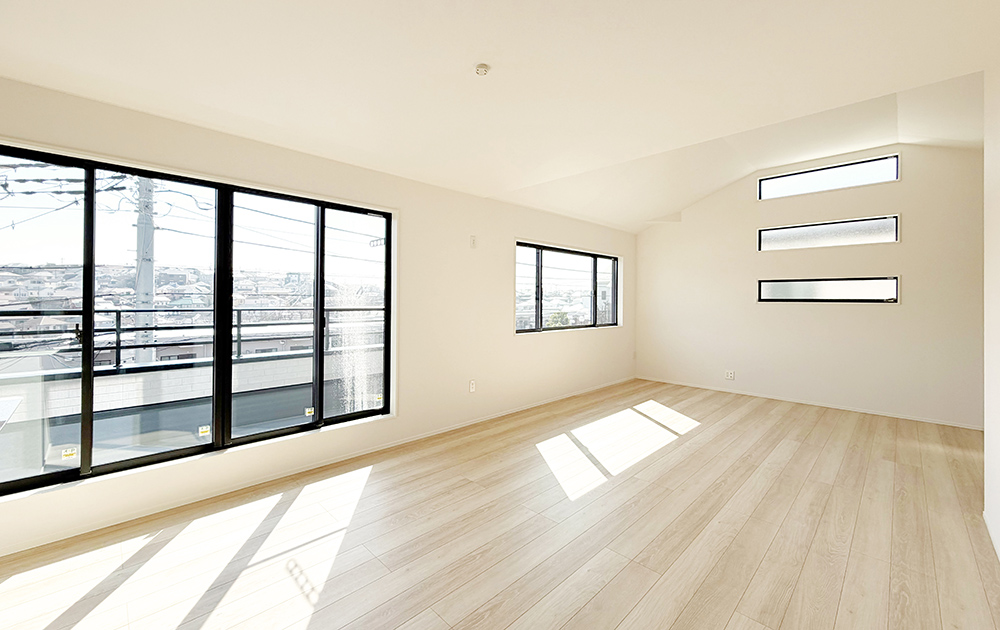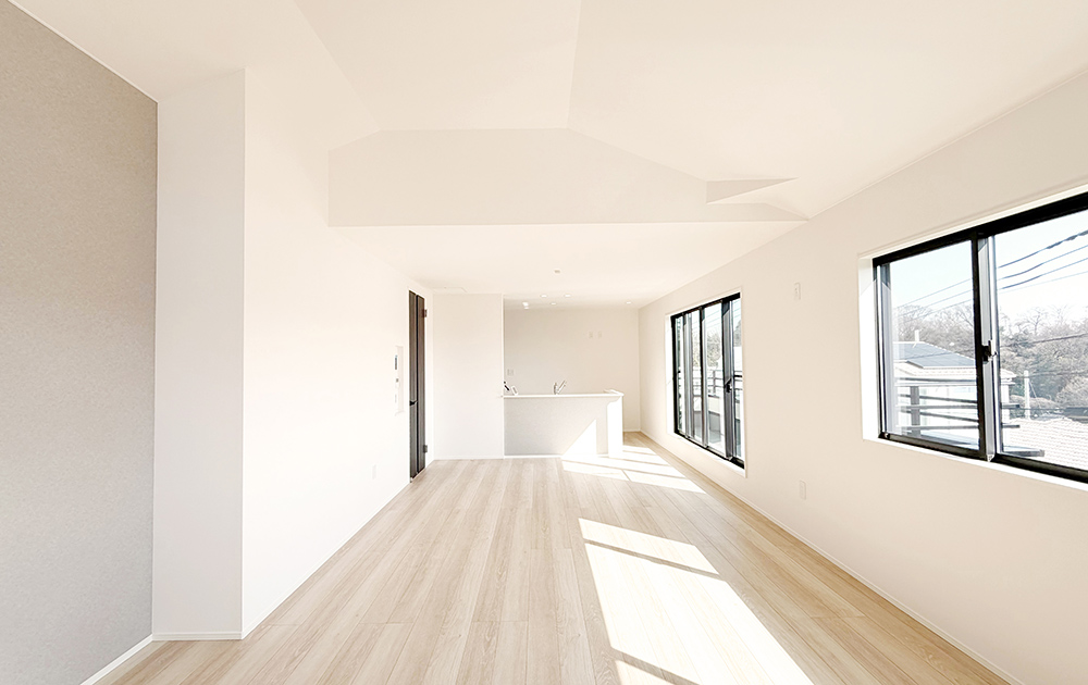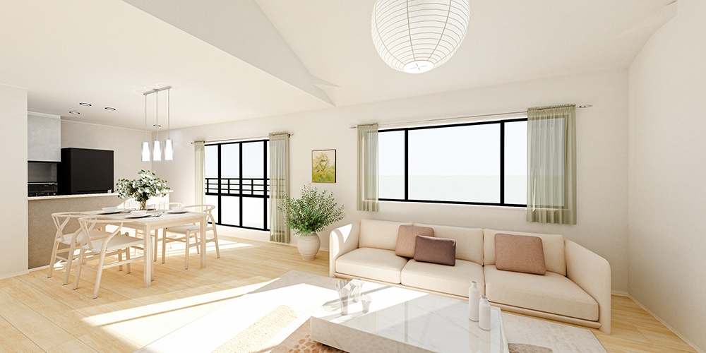 4枚引き戸のワイドサッシを採用し、LDKからの眺望が広がる設計に。視界が開けることで、開放感とともに室内をより広く感じられ、心地良い空間が生まれます。