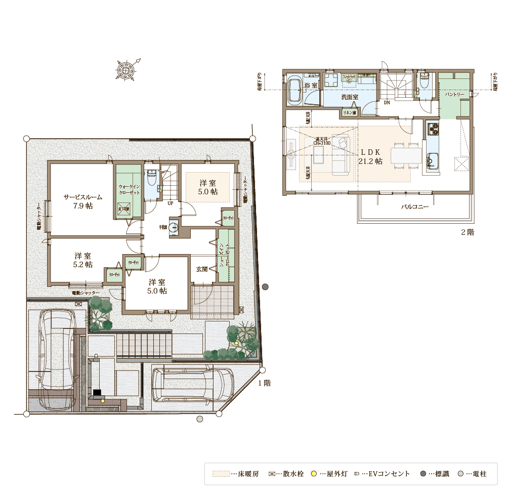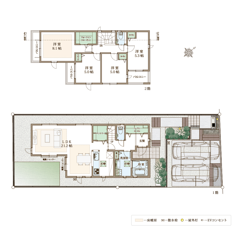 快適性と省エネ性に優れた太陽光パネル標準搭載の次世代型省エネ住宅。自立する住宅を目指し、災害時でも安心。Nearly ZEH省エネ住宅に該当。電動シャッターや防犯ガラスを合わせたペアガラスでセキュリティも万全。