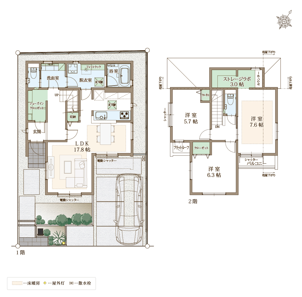 快適性と省エネ性に優れた太陽光パネル×蓄電池の次世代型省エネ住宅。自立する住宅を目指し、災害時でも安心。ZEH水準省エネ住宅に該当。電動シャッターや防犯ガラスを合わせたペアガラスでセキュリティも万全。
