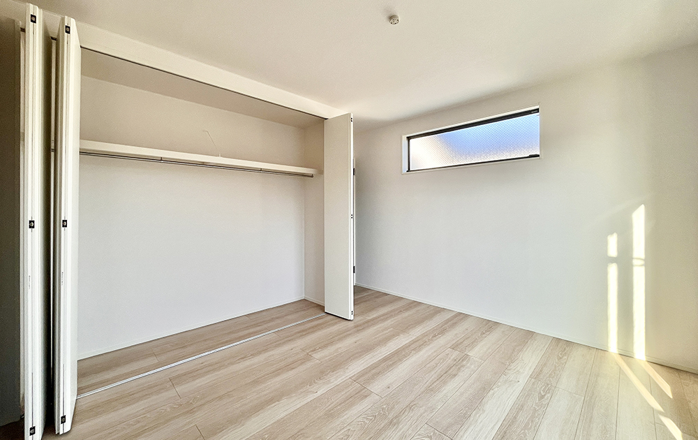 大型のウォークインクローゼットを設計。大量のお洋服が収納可能なので、衣替えいらずでご家族のお洋服を収納できます。