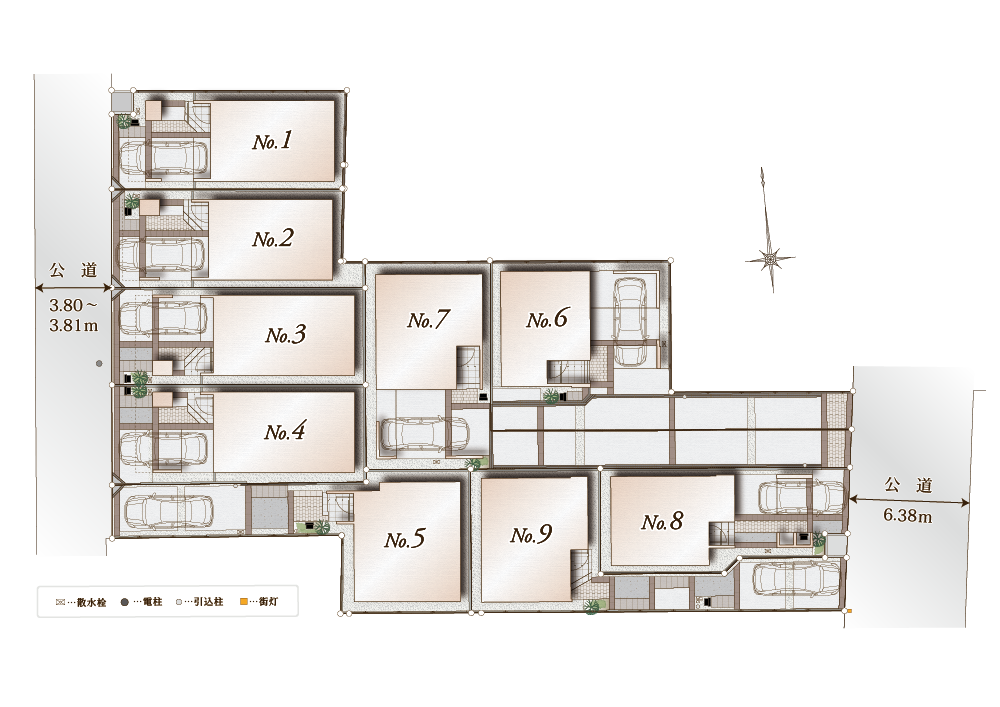 東側認定幅員6.38m アスファルト舗装 公道(6~9号棟)