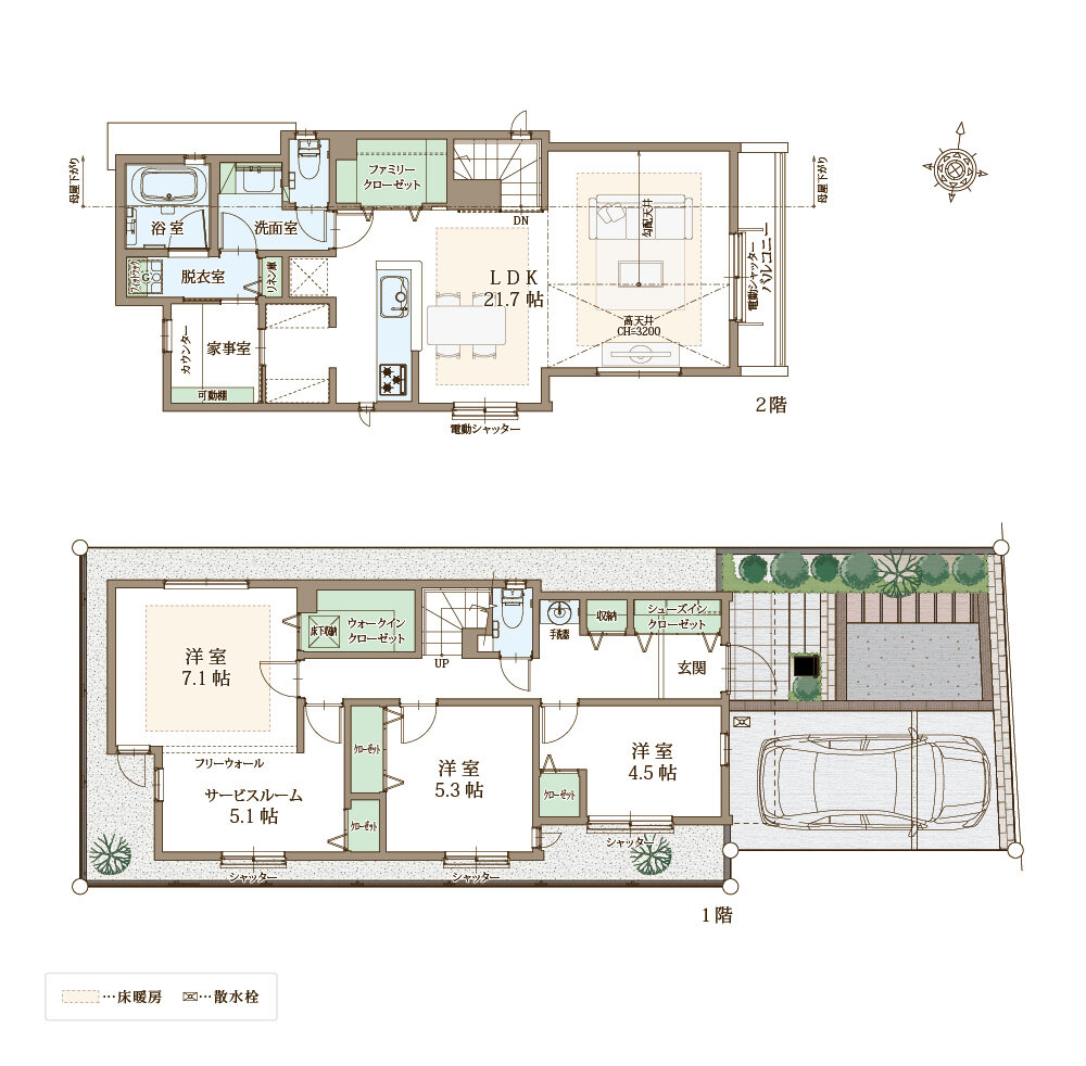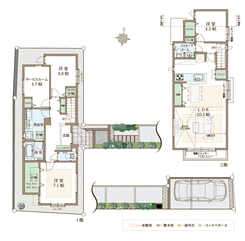 快適性と省エネ性に優れた太陽光パネル×蓄電池の次世代型省エネ住宅。自立する住宅を目指し、災害時でも安心。ZEH水準省エネ住宅に該当。電動シャッターや防犯ガラスを合わせたペアガラスでセキュリティも万全。