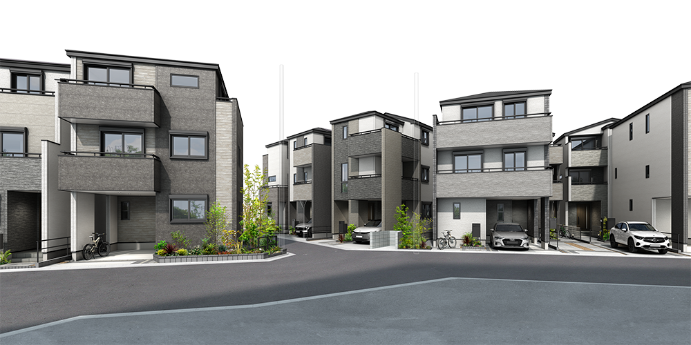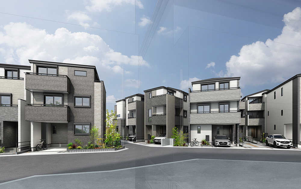 全邸に『防犯カメラ』×『防犯合わせガラス』×『ファミロック』×『人感センサー付きポーチ灯』搭載。先進のIoTを駆使しスマートフォンで管理、街区全体を「見える化」し、不審者の室内への進入をシャットアウト、先進のセキュリティ設備が充実。お子様の留守番、旅行、就寝の際も安心できる住宅仕様です。