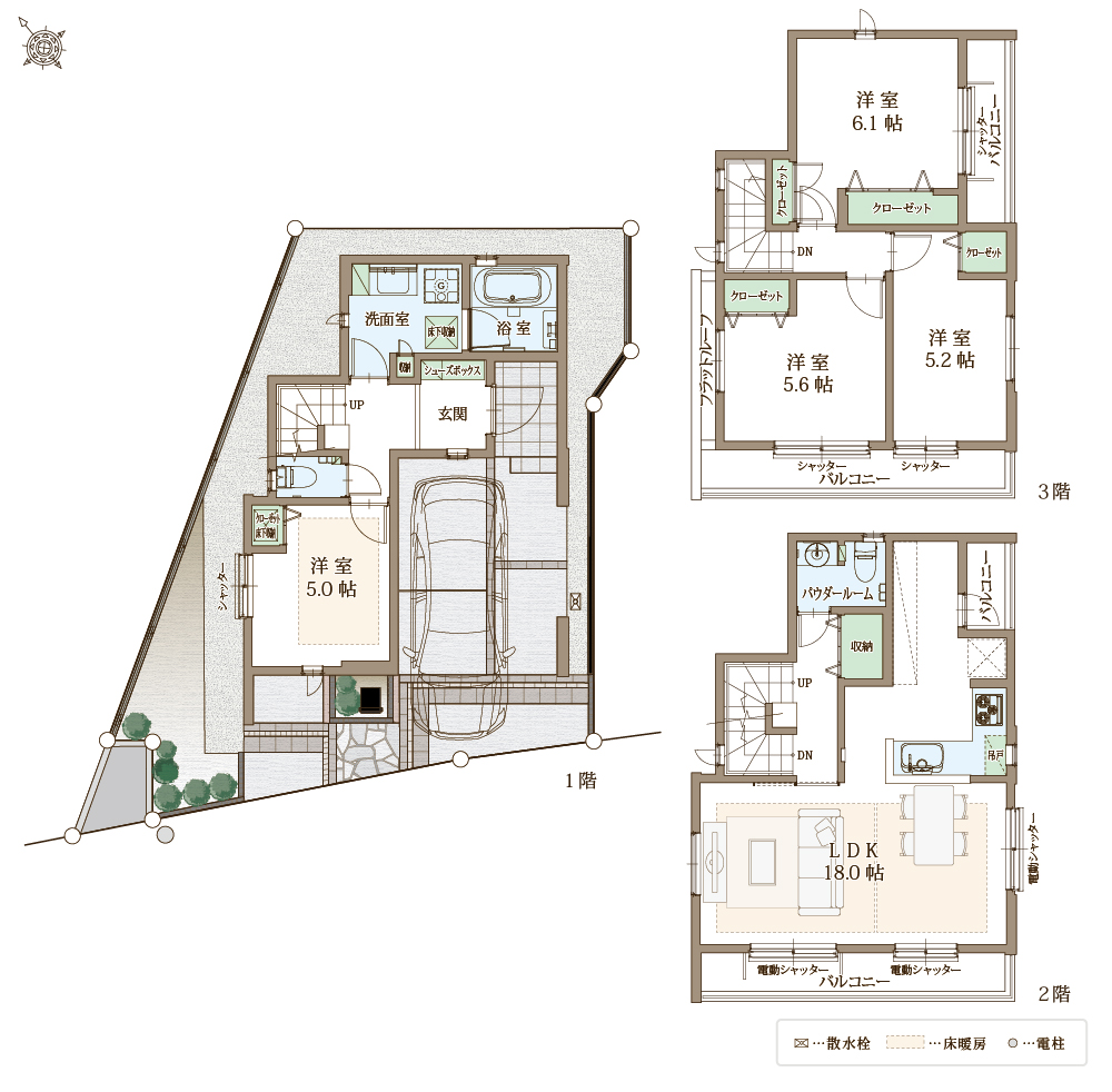 快適性と省エネ性に優れた太陽光パネル×蓄電池の次世代型省エネ住宅。自立する住宅を目指し、災害時でも安心。電動シャッターや防犯ガラスを合わせたペアガラスでセキュリティも万全。