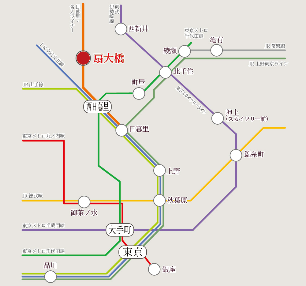 ※掲載の所要時間は平日・通勤時(7:30~9:00)のもので、乗り換え・待ち時間を含みます。また、平常時(11:00~14:00)は異なります。(2025年6月現在)