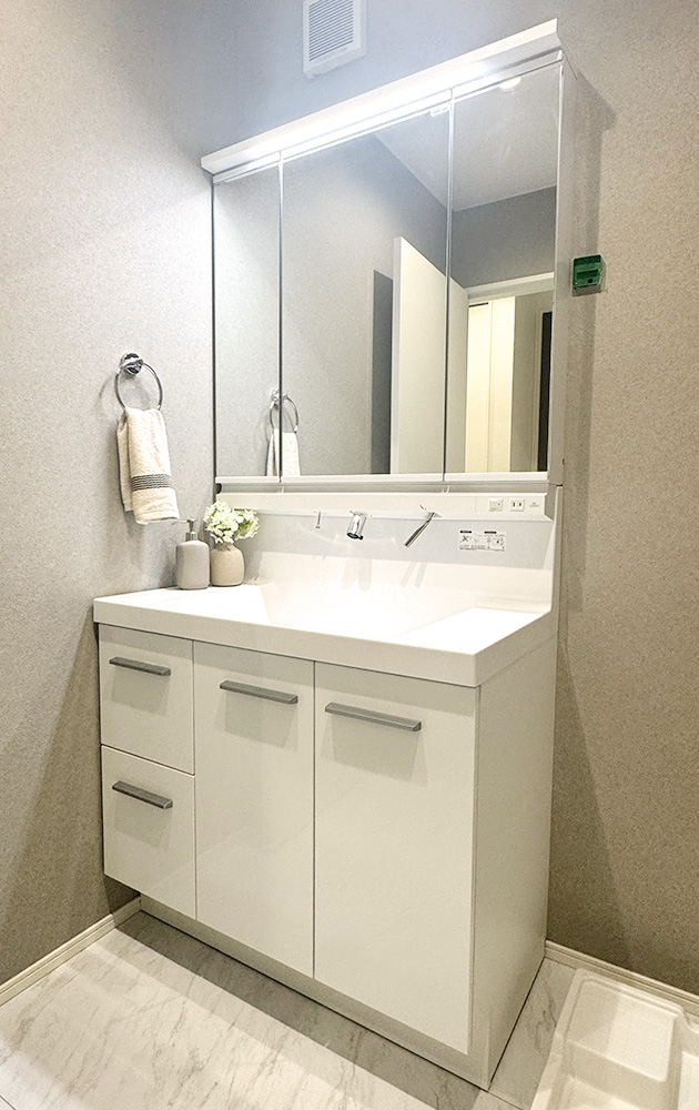 帰宅してすぐ手洗い・うがいができるため衛生的です。お出かけ前の身づくろいや来客時の手洗い場としてもご利用いただけます。