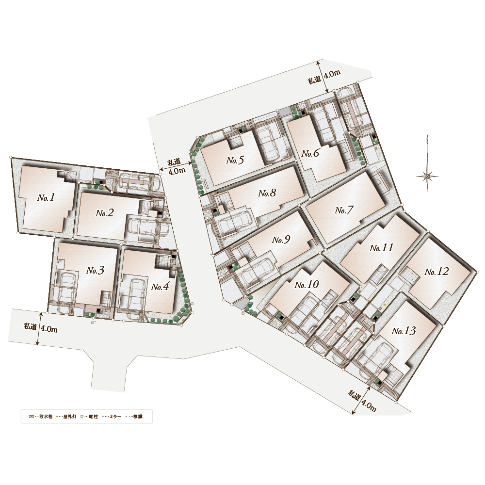 区域内側幅員4.00m アスファルト舗装 私道 南側幅員4.00m アスファルト舗装 私道 |
