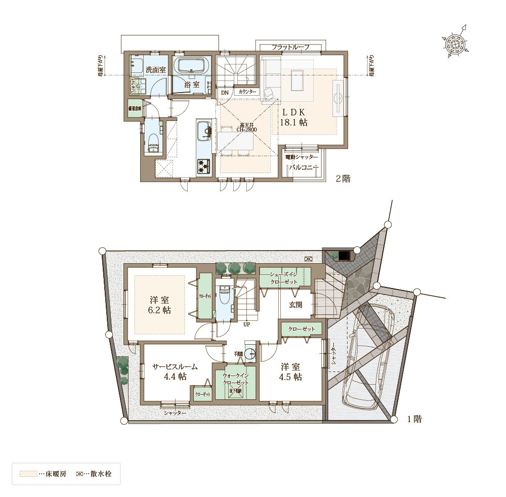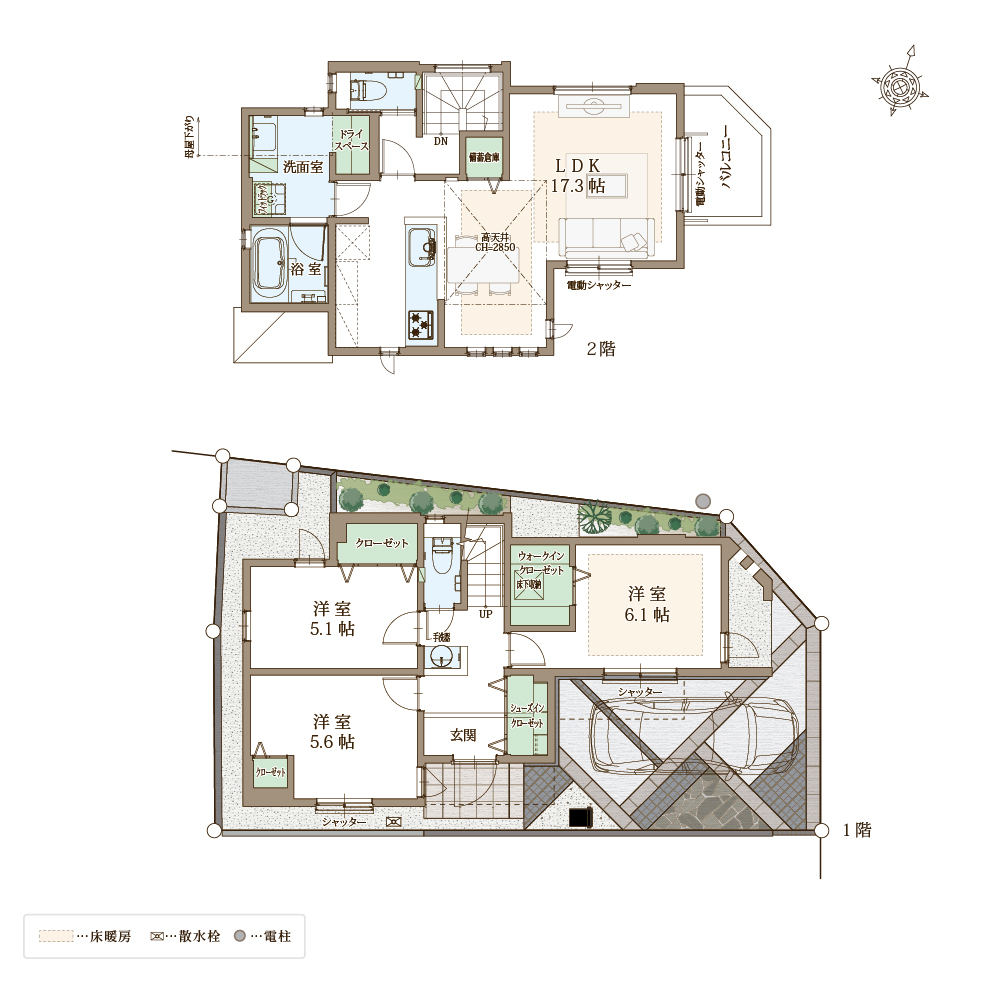 快適性と省エネ性に優れた太陽光パネル×蓄電池の次世代型省エネ住宅。自立する住宅を目指し、災害時でも安心。ZEH水準省エネ住宅に該当。電動シャッターや防犯ガラスを合わせたペアガラスでセキュリティも万全。