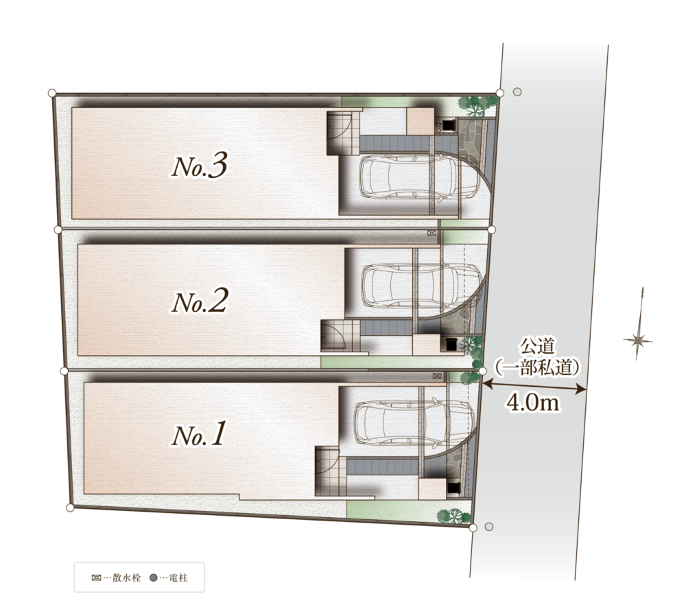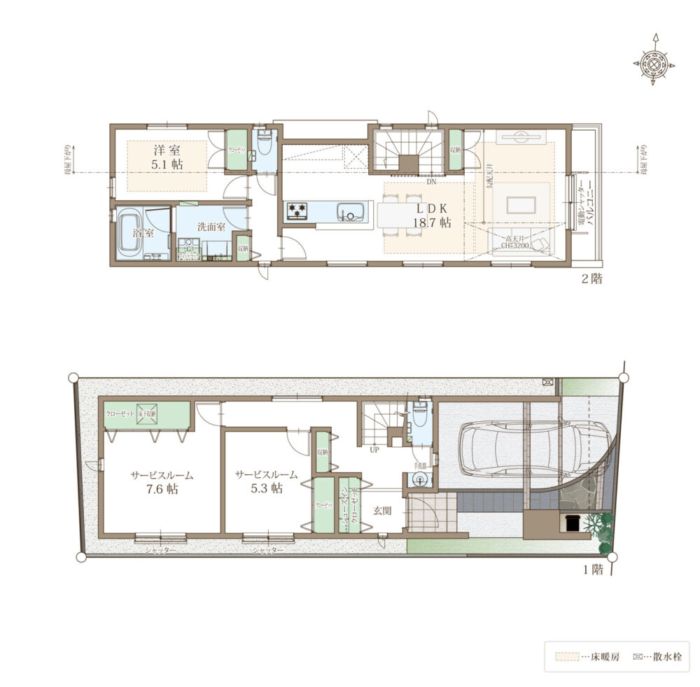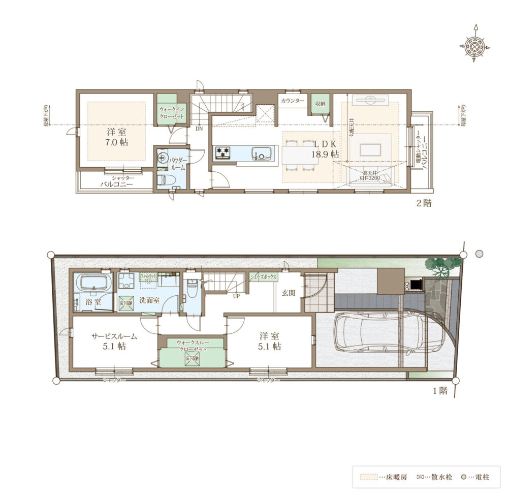 60%【第一種低層住居専用地域】※準耐火構造につき70%(1号棟・2号棟)