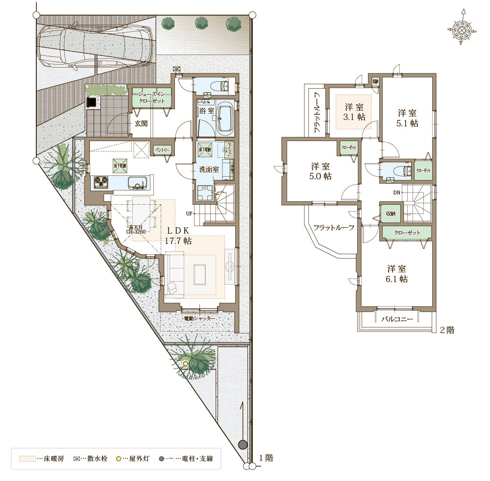 ※外構は図面を基に描き起こしたもので実際と異なる場合がございます。詳細については設計図書もしくは現地にてご確認ください。