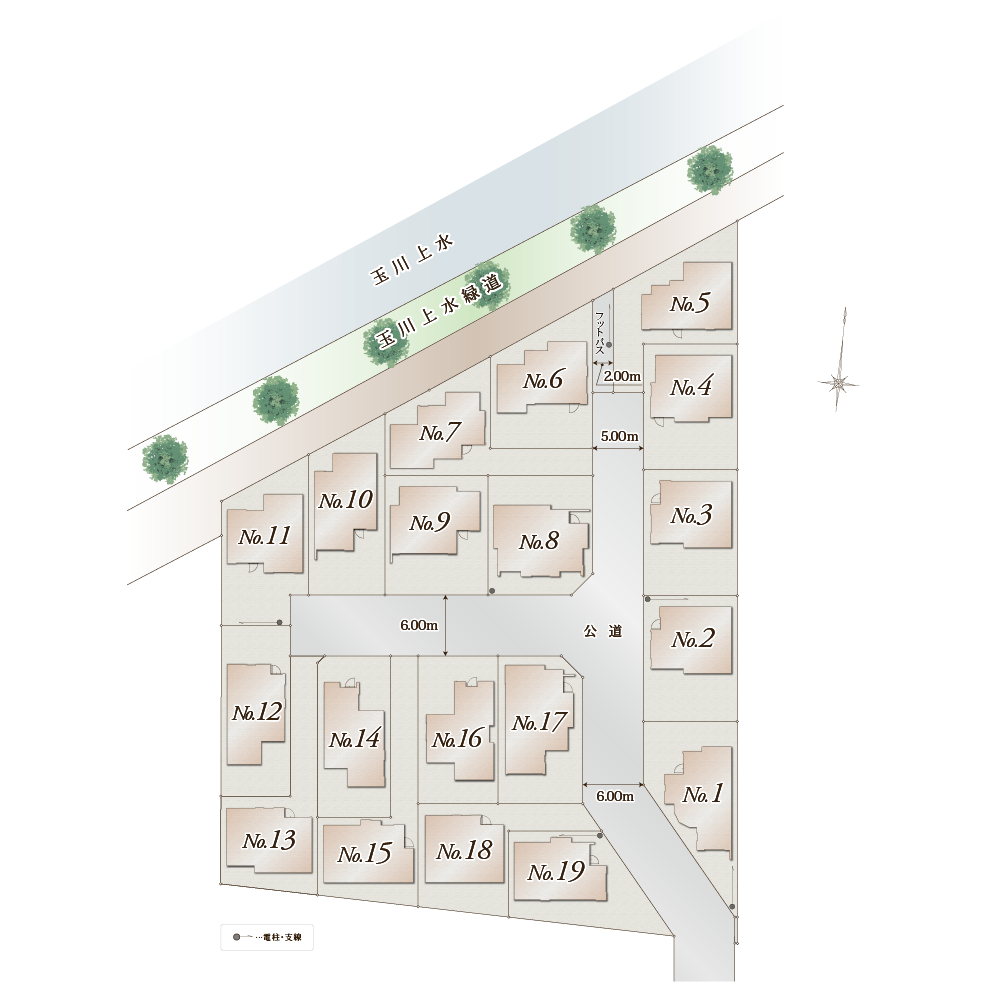 敷地面積115㎡超、ゆとりある全19邸の街区。