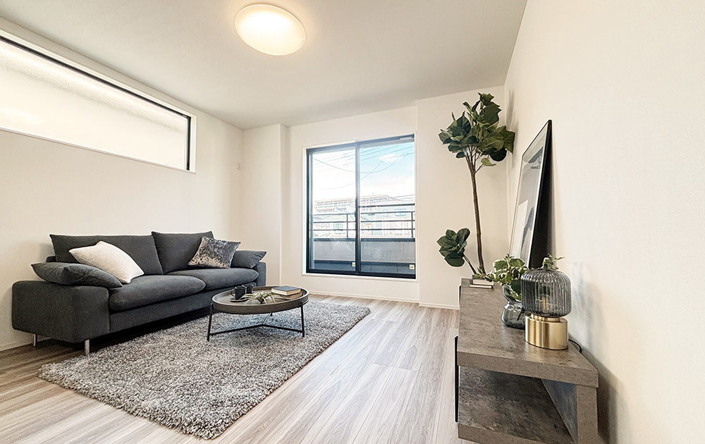 視線が気にならない、高いプライバシー性を誇る2階LDKプラン。差し込む明るい陽光が、家族団らんの空間を満たします。